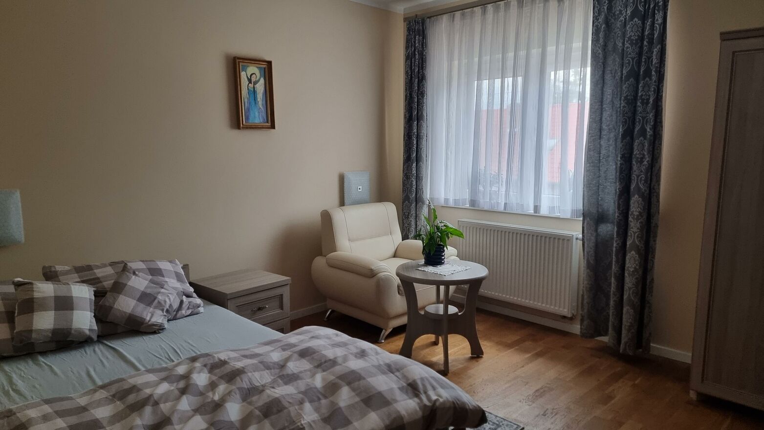 mamy 3 sypialnie w tym 2 mniejsze 1 większą, garderobę oraz łazienkę.